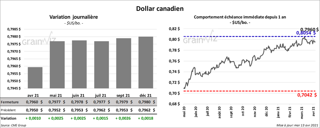 - Le NOPA devrait présenter ce jeudi son estimation de la trituration de soya US pour le mois de mars dernier. Les analystes s’attendent à une moyenne de 179,2 millions de boisseaux. L’an passé, à la même période, c’était 181,4 millions de boisseaux. Les stocks d’huile de soya sont prévus en moyenne à 1,822 milliard de lb.