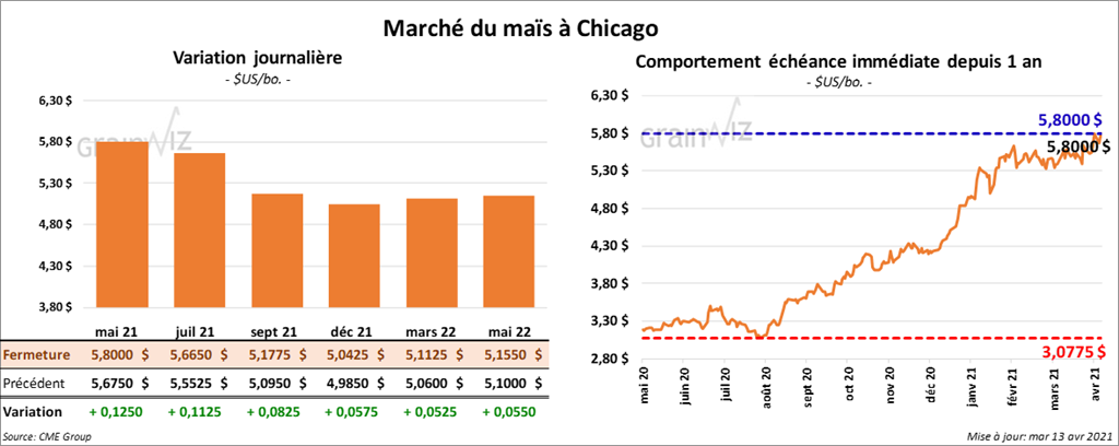 Les contrats de maïs US aux échéances les plus rapprochées ont fini la session en hausse entre 5 ¾ et 12 ½ cents
