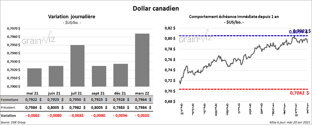 - Mardi prochain, Statistique Canada va présenter son rapport sur les intentions d’ensemencements. Selon les sondages, les marchés croient que 23,7 millions d’acres seront alloués à la culture du blé canadien. Ce serait une baisse de 1 million d’acres, lesquels devraient être compensés par l’augmentation des cultures de maïs, d’orge et de canola.