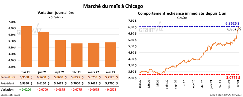À l’exception du contrat mai 21 qui a clôturé en hausse de 2 cents, les contrats de maïs US aux échéances les plus rapprochées ont terminé la session en baisse entre 7 et 8 ¾ cents.