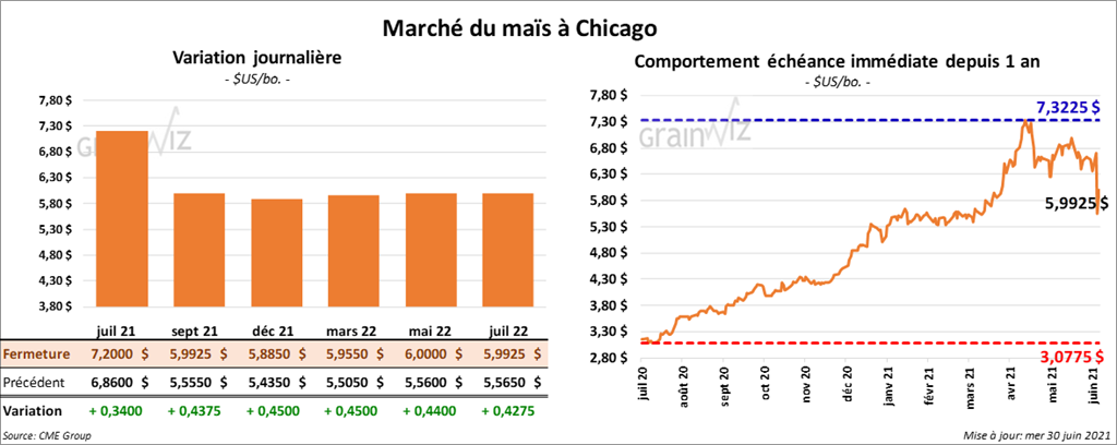 Les contrats de maïs US aux échéances les plus rapprochées ont terminé la journée en hausse entre 34 et 45 cents.