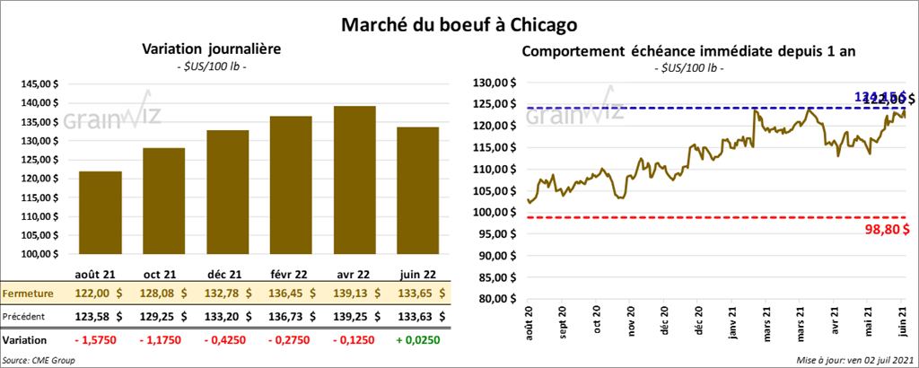 - Le 30 juin dernier, le CME Feeder Cattle Index était en baisse de 79 cents à 146,31 $.