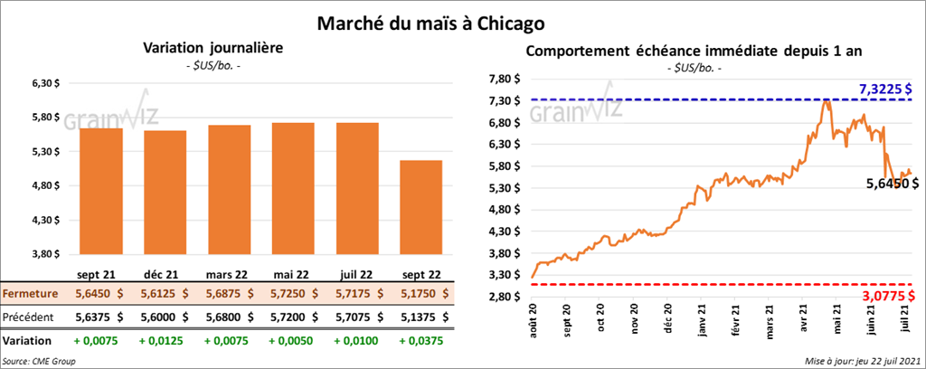Les contrats de maïs US aux échéances les plus rapprochées ont fini la journée en hausse entre ½ et 1 ¼ cent.