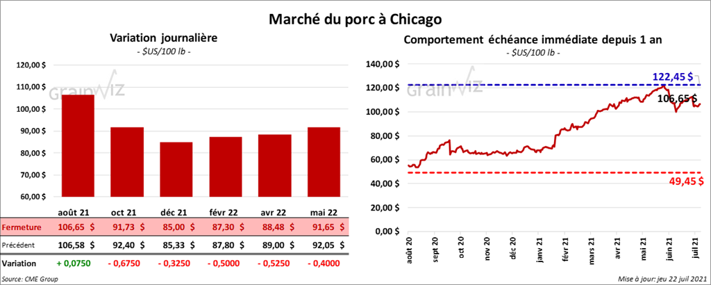 - Le 20 juillet dernier, le CME Lean Hog Index était en hausse de 1 cent à 112,34 $.