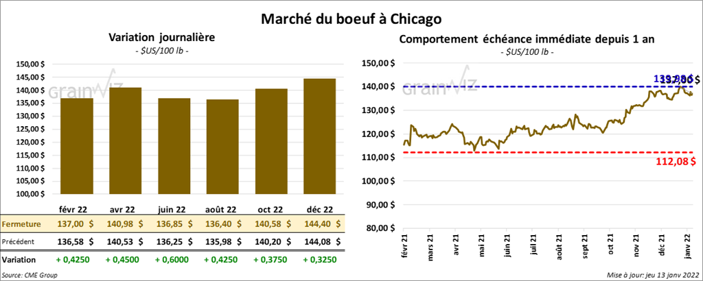 - Le 12 janvier dernier, le CME Feeder Cattle Index était en baisse de 20 cents à 162,01 $.