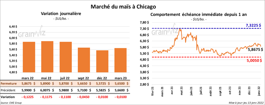 Les contrats de maïs US aux échéances les plus rapprochées ont terminé la journée en baisse entre 11 et 12 ¼ cents.