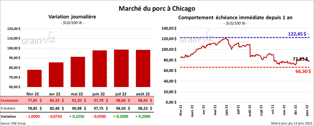 - Le 11 janvier dernier, le CME Lean Hog Index était en baisse de 7 cents à 75,06 $.