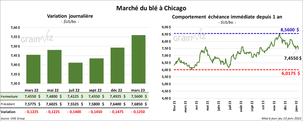 - L’International Grains Council a augmenté son estimation de la production mondiale de blé 2021/22 de 4 millions de tonnes à 781 millions de tonnes. La production australienne serait meilleure que prévu.