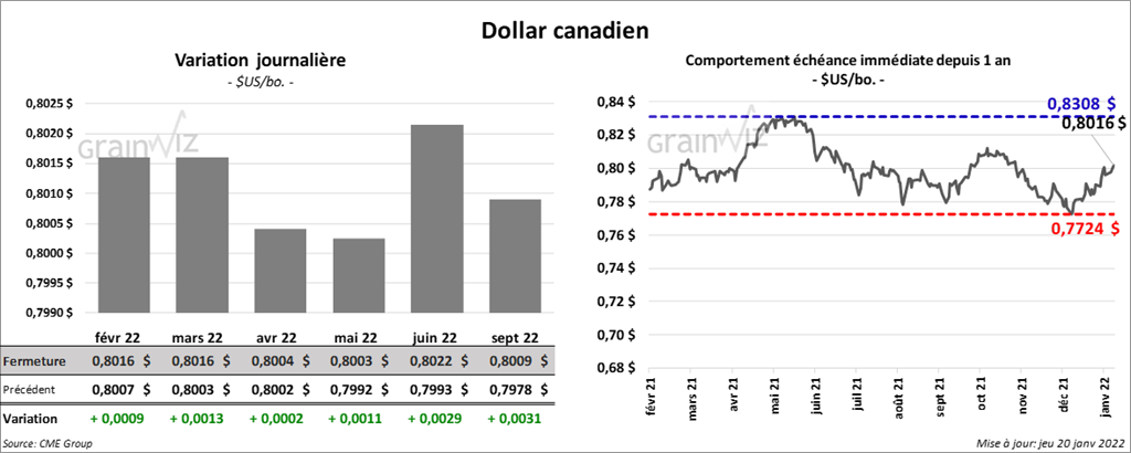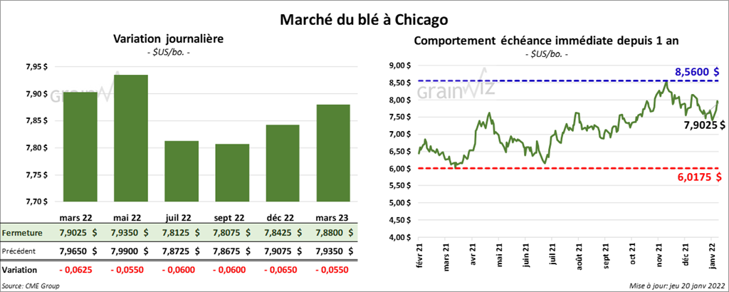 - L’invasion potentielle de l’Ukraine par la Russie fournit un support aux prix du blé.