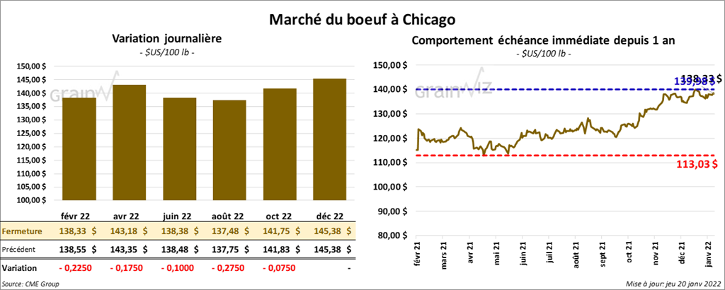 - Le 19 janvier dernier, le CME Feeder Cattle Index était en baisse de 4 cents à 161,20 $.