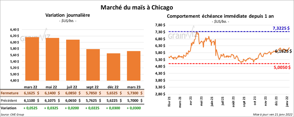 Les contrats de maïs US aux échéances les plus rapprochées ont clôturé en hausse entre 2 et 5 ¼ cents.