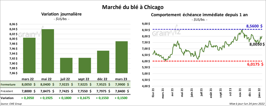 - La menace d’invasion de l’Ukraine par la Russie fournit toujours un support aux prix du blé.