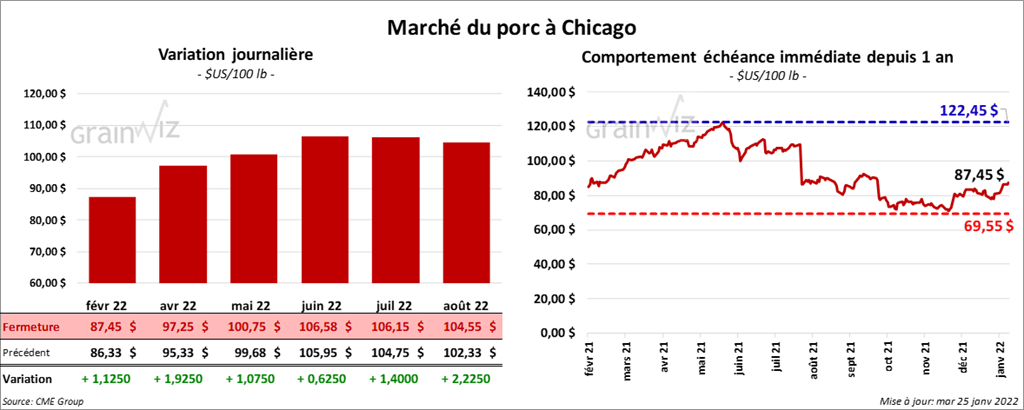 - Le 21 janvier dernier, le CME Lean Hog Index était en hausse de 81 cents à 78,32 $.