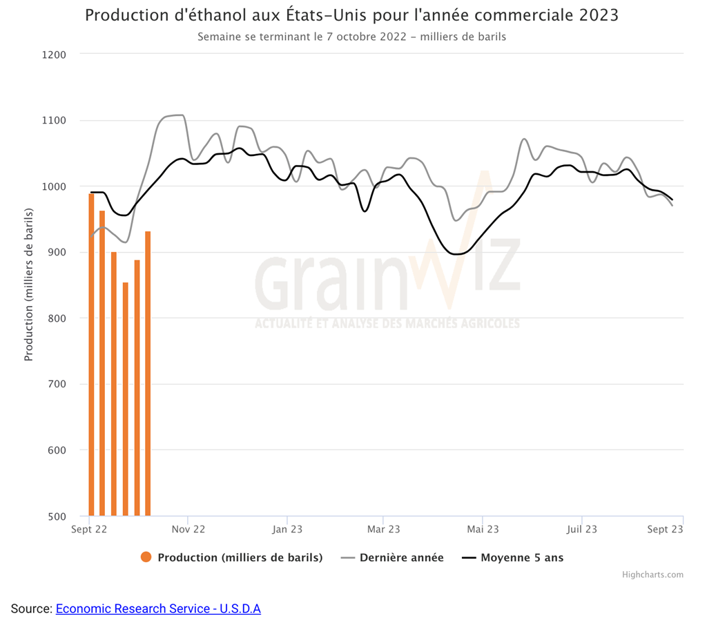 Voici les graphiques de Grainwiz concernant l’éthanol US…