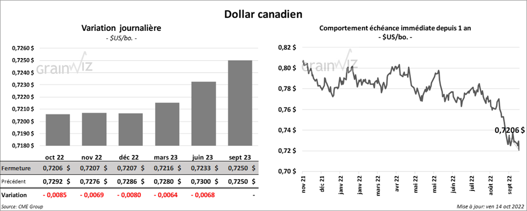 - Les ventes à l’exportation d’huile de soya US 2022/23, qui ont commencé le 1er octobre dernier, ont été de 3,300 tonnes. Le Canada a été l’acheteur. Les projections des analystes étaient entre -10,000 et 20,000 tonnes.