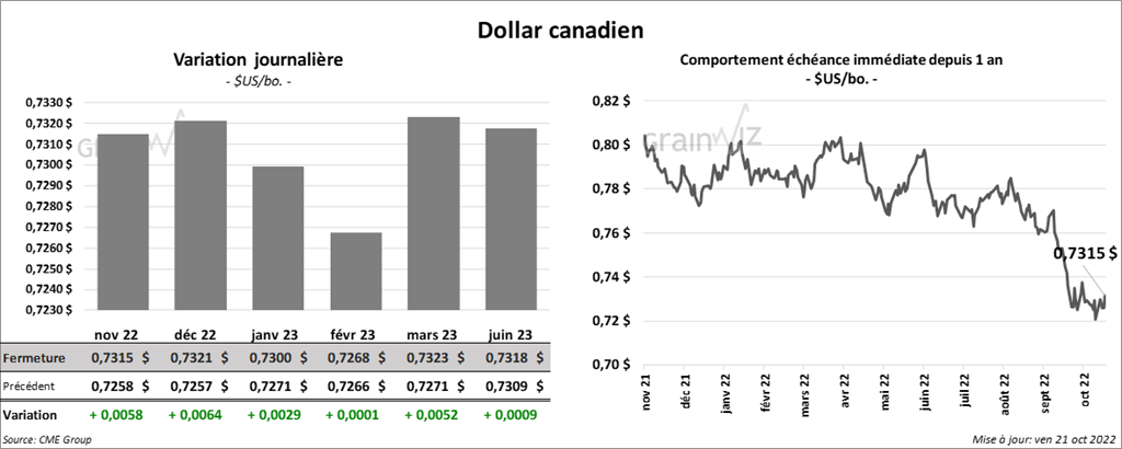 Les contrats de soya US aux échéances les plus rapprochées ont clôturé en progression entre 4 et 4 ½ cent. Ceux de tourteau de soya US aux échéances les plus rapprochées ont également fini avec des gains entre 1,60 et 4,60 $/tonne. Les contrats d’huile de soya US aux échéances les plus rapprochées ont terminé dans le vert entre 103 et 108 points.