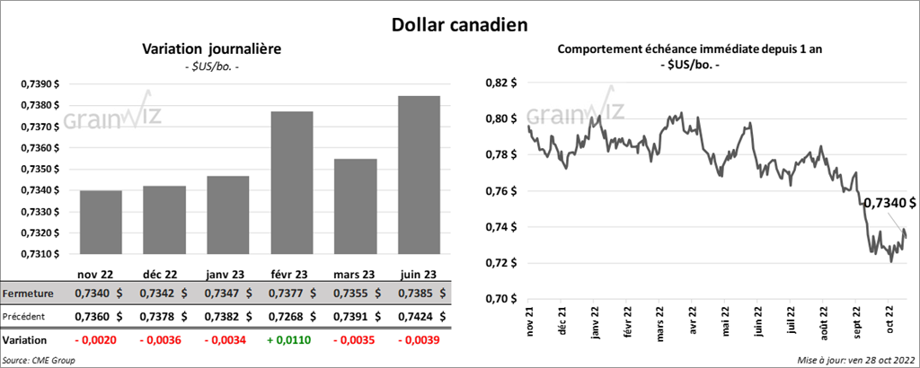 Les contrats de soya US aux échéances les plus rapprochées ont clôturé en hausse entre 6 ¾ et 7 ½ cents. Ceux de tourteau de soya US aux échéances les plus rapprochées ont également terminé en progression entre 6,10 et 9,30 $/tonne. Les contrats d’huile de soya US aux échéances les plus rapprochées ont fait l’inverse en fermant en baisse entre 35 et 51 points.