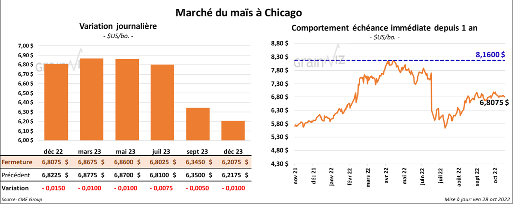Les contrats de maïs US aux échéances les plus rapprochées ont terminé la séance avec des pertes entre 1 et 1 ½ cents.