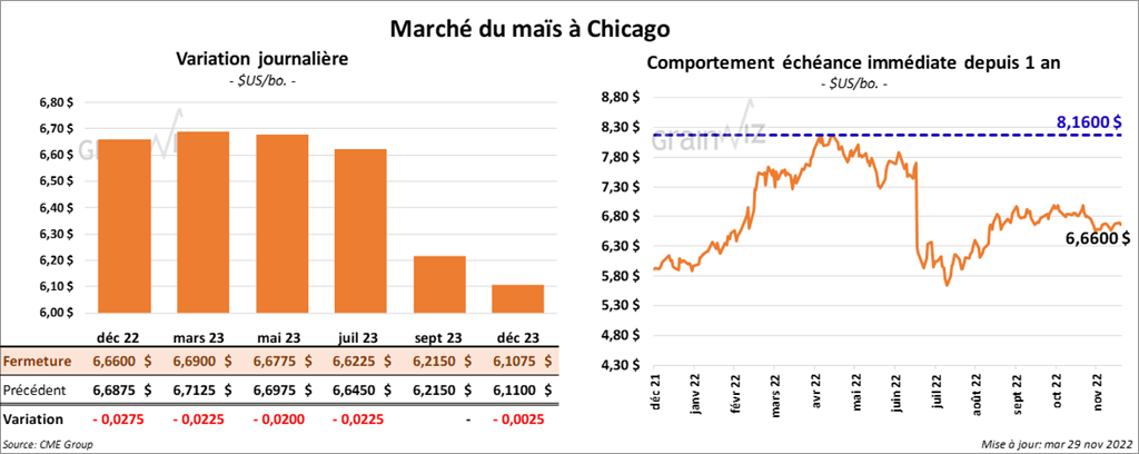 Les contrats de maïs US aux échéances les plus rapprochées ont clôturé avec des pertes entre 2 et 2 ¾ cents.
