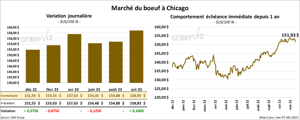 - Le 6 décembre dernier, le CME Feeder Cattle Index était en hausse de 49 cents à 179,02 $.