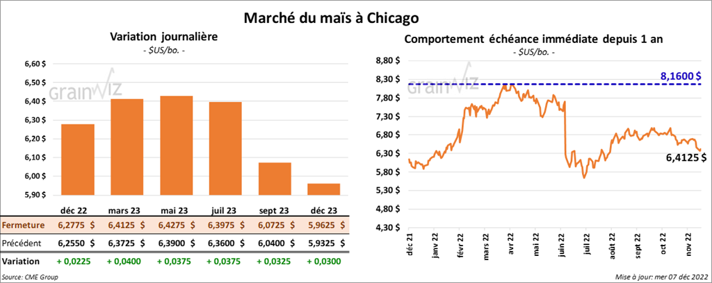 Les contrats de maïs US aux échéances les plus rapprochées ont terminé la séance en progression entre 2 ¼ et 4 cents.