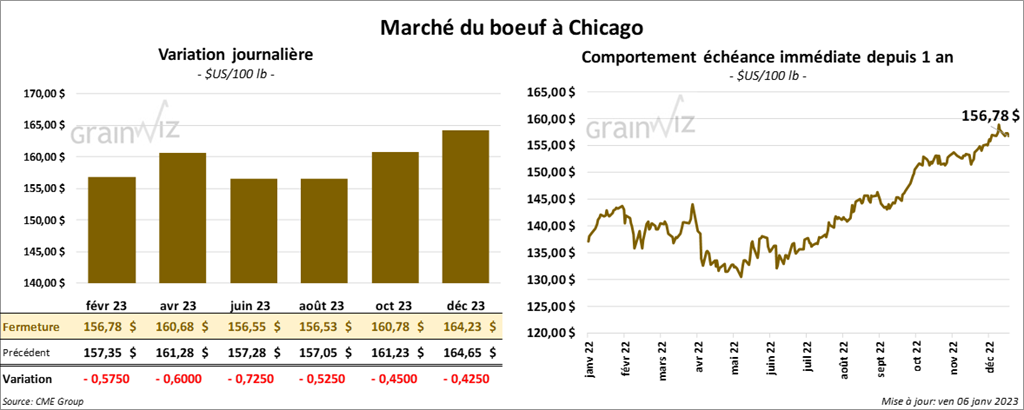 - Le 5 janvier dernier, le CME Feeder Cattle Index était en hausse de 15 cents à 180,46 $.