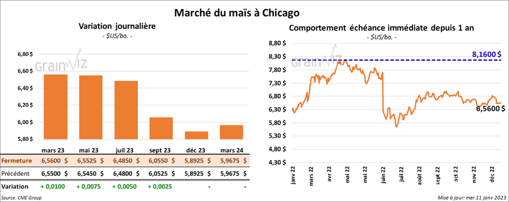Les contrats de maïs US aux échéances les plus rapprochées ont terminé la séance en hausse entre ½ et 1 cent.