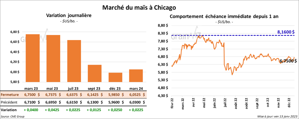 Les contrats de maïs US aux échéances les plus rapprochées ont terminé la journée en progression entre 2 ¼ et 4 ¼ cents.