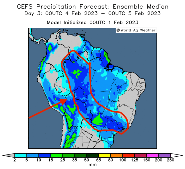 - Ce matin, World Weather prévoyait pour aujourd’hui et demain des averses dans l’ouest et le sud de l’Argentine. Par ailleurs, pour le reste de la semaine, l’organisme s’attendait à ce que le temps soit plus sec dans ces régions. Ailleurs, pour le nord de l’Argentine, World Weather anticipait pour la semaine, des conditions sèches. Toujours ce matin, il mentionnait que des précipitations plus nombreuses seront nécessaires au cours du mois pour limiter les effets de la sécheresse qui a ravagé l’ensemble de l’Argentine au cours des derniers mois. Malgré tout, l’organisme n’anticipe toujours pas de précipitation agressive pour le mois de février. Dans les faits, les conditions de culture se sont récemment améliorées en Argentine. Reste à savoir si cette tendance pourra persister au cours du mois de février.