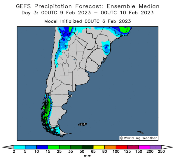 - Cette carte de l’Argentine, dessinée pour les 3 prochains jours, montre l’absence de précipitations.