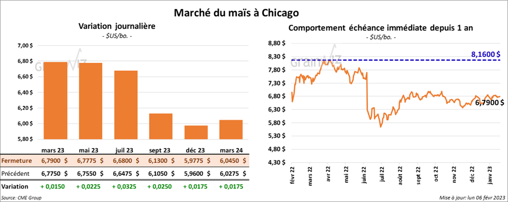 Les contrats de maïs US aux échéances les plus rapprochées ont terminé la journée en hausse entre 1 ½ et 3 ¼ cents