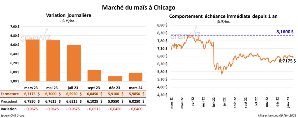 Les contrats de maïs US aux échéances les plus rapprochées ont terminé la journée en baisse entre 5 ¾ et 6 ¾ cents.