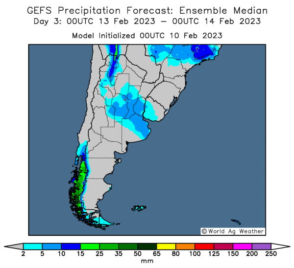 - Essentiellement, avec les dernières pluies et celles à venir, les conditions pour le maïs et le soya argentin pourraient rester stables, mais seulement à court terme. Il faudra plus d’averses pour limiter davantage le stress hydrique subit par les cultures.