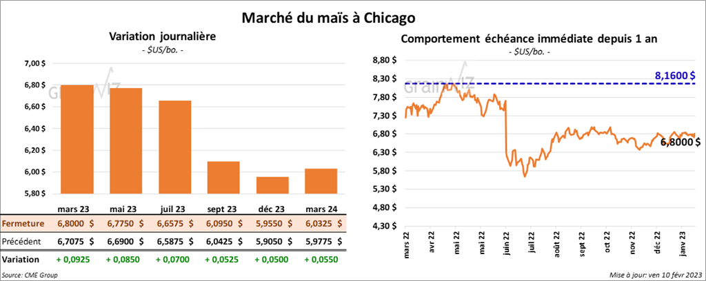 Les contrats de maïs US aux échéances les plus rapprochées ont fini avec des gains entre 7 et 9 ¼ cents.