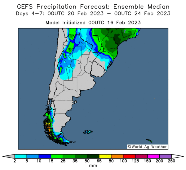 - Ce matin, World Weather prévoyait, pour aujourd’hui et demain, un certain potentiel de précipitations pour le centre de l’Argentine. L’organisme expliquait que pour cette période, les pluies pourraient évoluer entre certaines parties de la province de Cordoba en touchant des zones autour du sud et l’ouest de celle de Santa Fe. Des averses additionnelles étaient également anticipées cette nuit pour les mêmes régions. Pour les 10 prochains jours, World Weather anticipait des averses dans l’ouest et les portions nord de l’Argentine, mais pas dans les provinces de Buenos Aires, de La Pampa ni dans le sud de celle de Cordoba, ni dans le sud de celle de Santa Fe, ni dans certaines parties de celle d’Entre Rio.