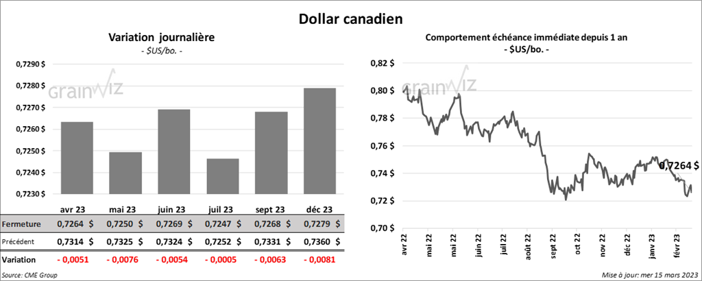 - Aujourd’hui paraissait le rapport mensuel du NOPA. L’organisme US estime que ses membres ont trituré 165,414 millions de boisseaux de soya US au cours du mois dernier. Il s’agit d’une baisse de 7,6 % par rapport à janvier, mais aussi d’une hausse de 0,2 % comparativement à février 2022. Les analystes anticipaient une meilleure production à 166,06 millions de boisseaux.