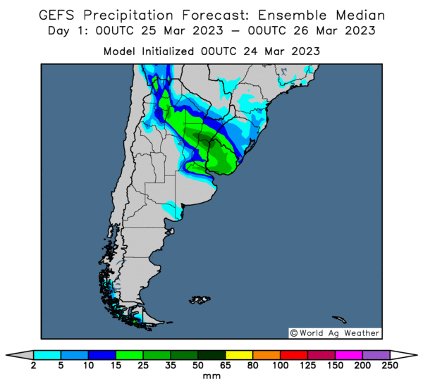 - World Weather prévoit des averses au cours des deux prochaines semaines dans le nord et le centre de l’Argentine. Dans ces secteurs, les conditions de culture pourraient s’améliorer en favorisant les cultures tardives de maïs et de soya.