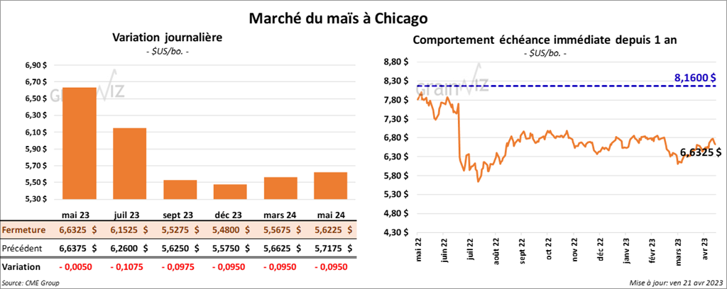 Les contrats de maïs US aux échéances les plus rapprochées ont fini la journée en baisse entre ½ et 10 ¾ cents.