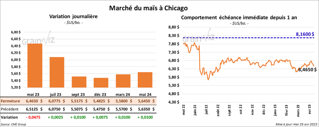 Les contrats de maïs US aux échéances les plus rapprochées ont clôturé avec des gains entre ¼ et 1 cent. Celui mai 23 a fait exception en finissant dans le rouge par 4 ¾ cents.