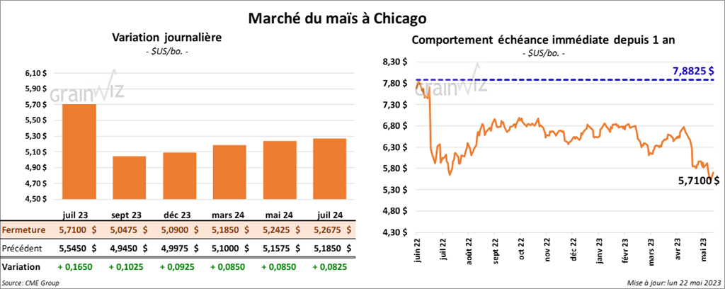 Les contrats de maïs US aux échéances les plus rapprochées ont clôturé avec des gains entre 9 ½ et 16 ½ cents.