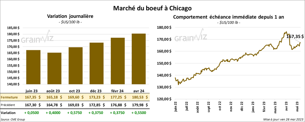Les contrats de bœuf US aux échéances les plus rapprochées ont terminé la séance dans le vert entre 4 et 57 cents. Ceux de veau US aux échéances les plus rapprochées ont fait l’inverse en fermant en recul entre 77 cents et 1,02 $.