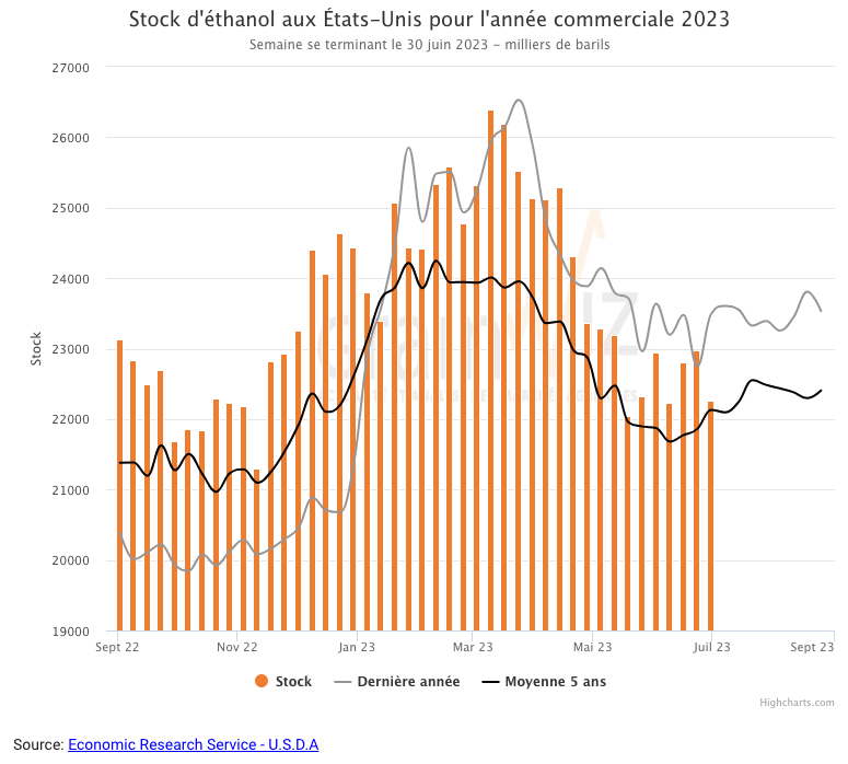 Quant aux inventaires d’éthanol US, ils ont été établis à 22,260 millions de barils, soit à une baisse de 3,1 % comparativement à la semaine précédente et à une réduction de 5,2 % par rapport à l’an passé.
