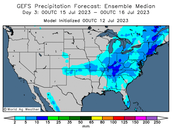 Au cours de la même période, World Weather prévoit des averses sporadiques pour le nord des Plaines et le haut Midwest.