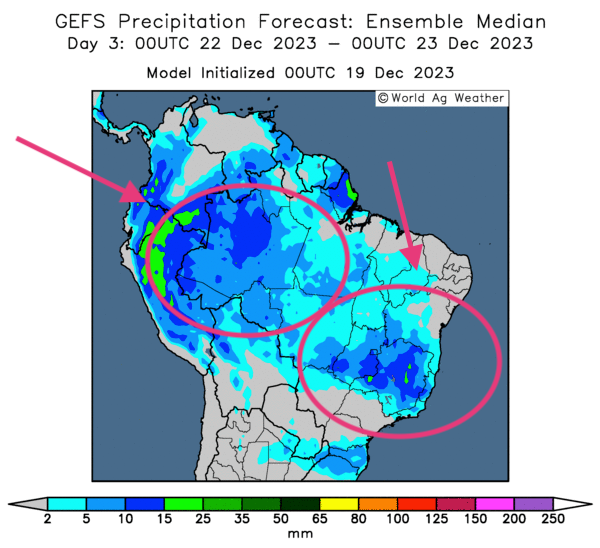 Ailleurs, dans le sud du Brésil et en Argentine, les conditions météo restent favorables aux différentes cultures.