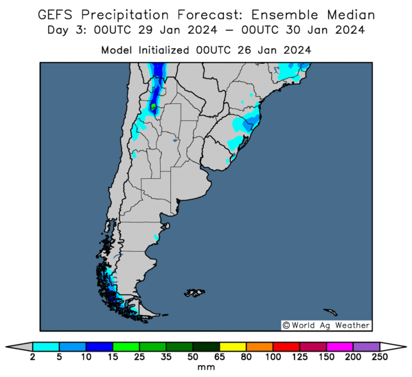 Pour le Brésil, World Weather prévoit des averses surtout au nord, où des inondations pourraient avoir lieu sans que des dommages importants puissent se produire. Au sud du pays, des conditions plus sèches sont attendues au cours des prochains jours.
