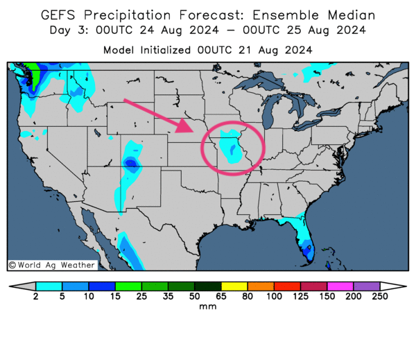 - À court terme, les météorologues de World Weather croient que pour l’ouest du Midwest, les températures pourraient être plus élevées ce week-end et en début de la semaine prochaine, assez pour provoquer un certain stress aux cultures la région.