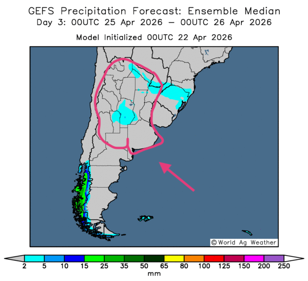 - Dans le cas de l’Argentine, World Weather mentionne que les conditions sont particulièrement humides à plusieurs endroits. Toutefois, l’organisme estime que le temps sec prévu au cours des prochains jours pourrait améliorer la situation de la plupart des cultures.