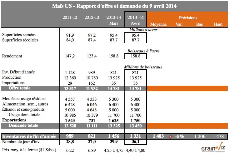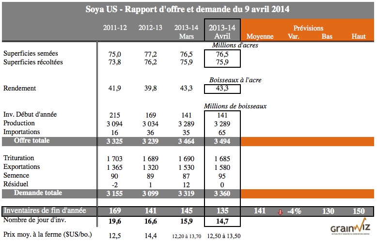 Pour accéder au rapport mensuel complet du USDA (en anglais) : WASDE – 9 avril 2014