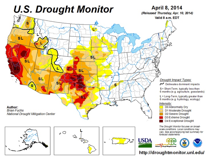 Les cultures de blé d’hiver aux États-Unis restent dans l’ensemble dans un mauvais état. Selon le dernier rapport du USDA à cet effet, 35% sont dans un état jugé de « mauvais à très mauvais » comparativement à 36% à pareille date l’an dernier. Les conditions restent très sèches dans le sud des Plaines, particulièrement dans les États du Texas et de l’Oklahoma. Des averses sont prévues dans les prochains jours, mais il n’est pas certain que les précipitations attendues soient suffisantes pour atténuer de manière intéressant les conditions extrêmement sèches observées.