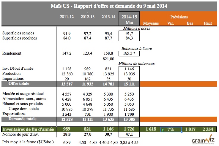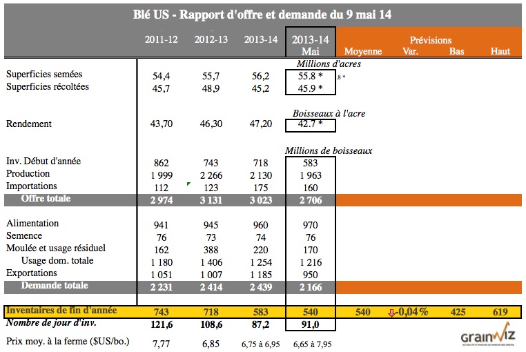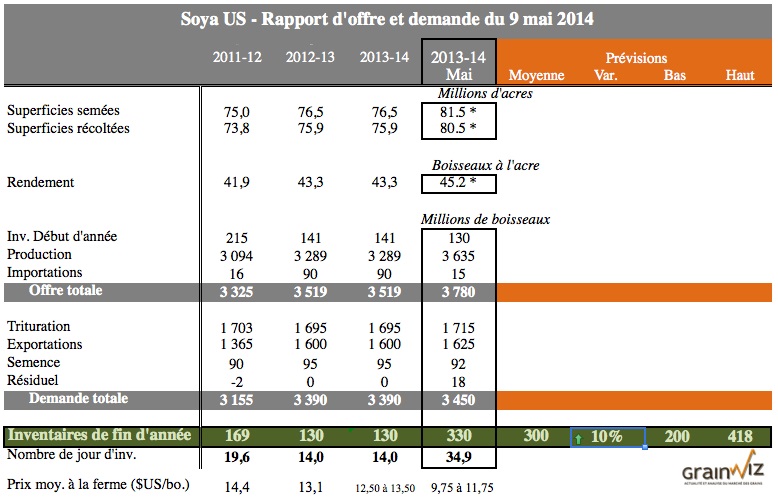 Pour accéder au rapport complet du USDA : WASDE Mai 2014
